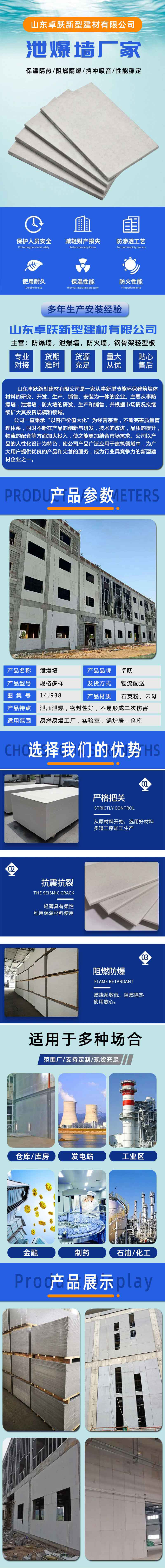 厂家供应化工厂泄爆墙 特种泄爆墙板 导热系数小 泄散迅速